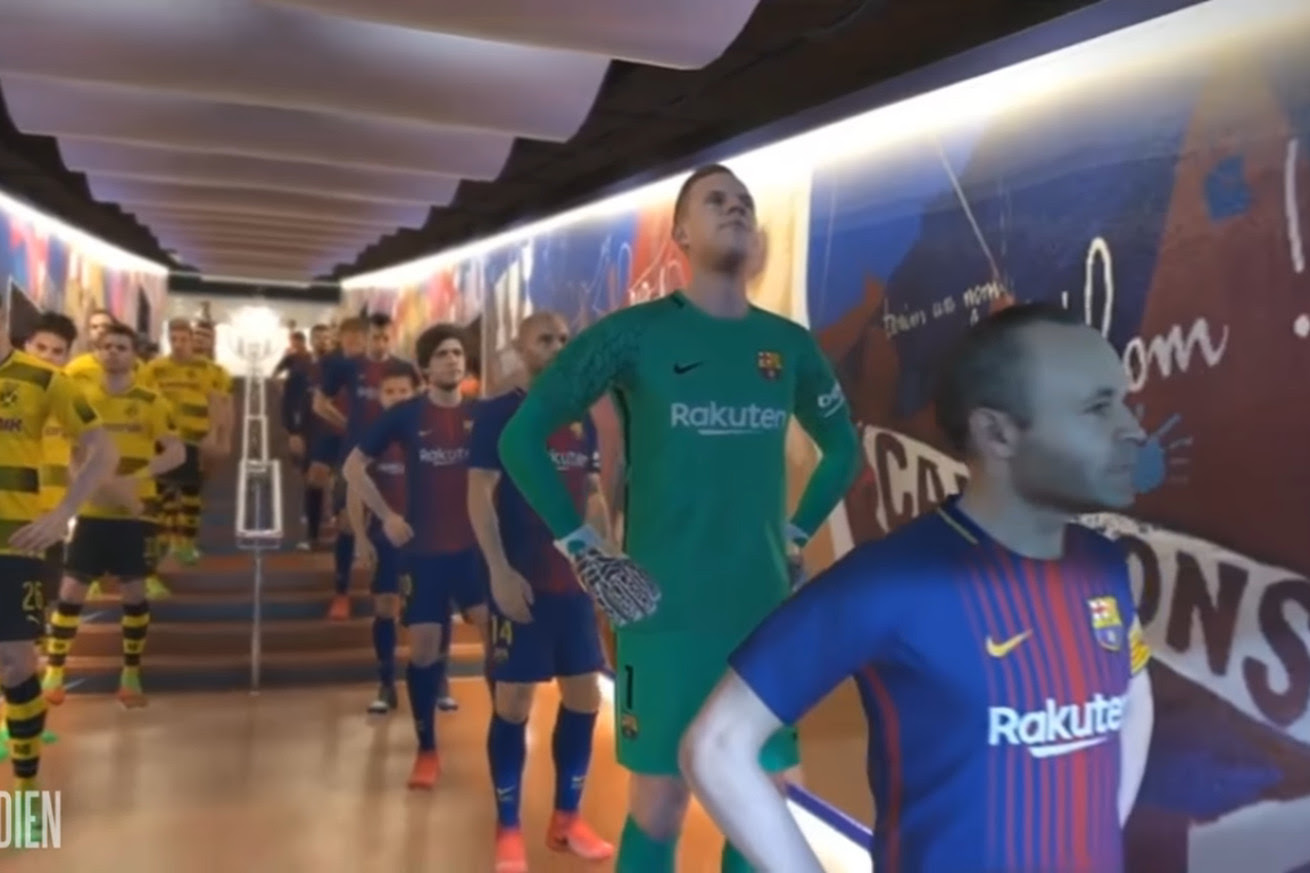 Barça and Borussia Dortmund are featured in the video above with their new uniforms, and the Camp Nou is looking gorgeous, the tunnel is perfect, and the gameplay really seems to have improved from previous titles.